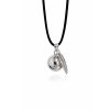 Bola ve stříbrné barvě s přívěskem pírka, má průměr 18mm. Je vyrobena z mědi a mosazi. Bola je dodávána na dlouhé černé saténové šňůrce (cca 130cm) zavázané jen na uzlík, aby se dala délka v průběhu těhotenství snadno přizpůsobovat rostoucímu těhotenskému bříšku. Nebo lze objednat rolničku na řetízku z bižuterního kovu, který má délku cca 130cm, z toho 8cm lze libovolně nastavovat. Pro větší variabilitu délky však doporučuji zvolit variantu na šňůrce.
