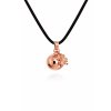 Bola v odstínu rosegold s přívěskem čtyřlístku, má průměr 18mm. Je vyrobena z mědi a mosazi. Bola je dodávána na dlouhé černé saténové šňůrce (cca 130cm) zavázané jen na uzlík, aby se dala délka v průběhu těhotenství snadno přizpůsobovat rostoucímu těhotenskému bříšku. Nebo lze objednat na dlouhém řetízku z bižuterního kovu.