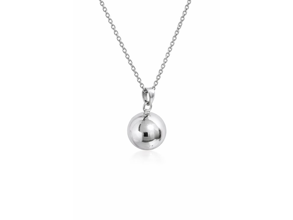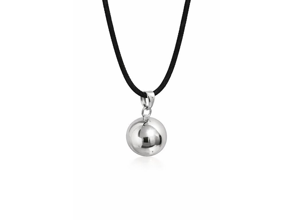Bola ve stříbrné barvě, má průměr 18mm. Je vyrobena z mědi a mosazi. Bola je dodávána na dlouhé černé saténové šňůrce (cca 130cm) zavázané jen na uzlík, aby se dala délka v průběhu těhotenství snadno přizpůsobovat rostoucímu těhotenskému bříšku. Nebo lze objednat rolničku na řetízku z bižuterního kovu, který má délku cca 130cm, z toho 8cm lze libovolně nastavovat. Pro větší variabilitu délky však doporučuji zvolit variantu na šňůrce.